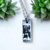 Create a timeless keepsake with our laser engraved photo necklace, a unique piece that lets you carry cherished memories close. Personalize it with a special photo, turning it into a treasured accessory.