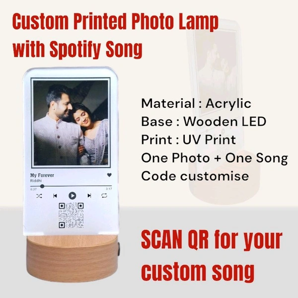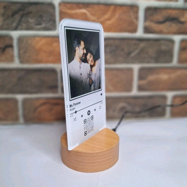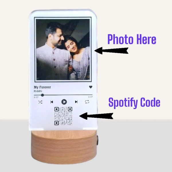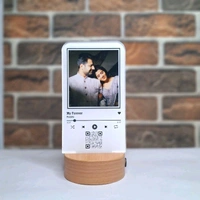 Desktop Led Night Lamp With Customise Photo and Spotify Code, Made with Acrylic, Wooden Base Warm Light