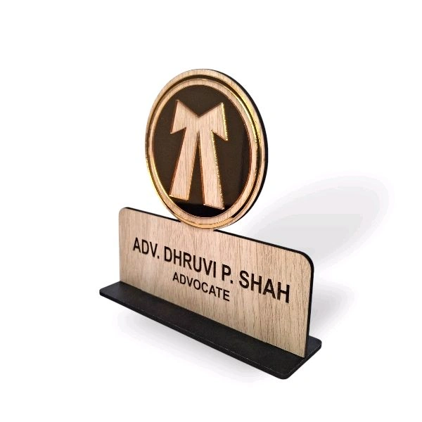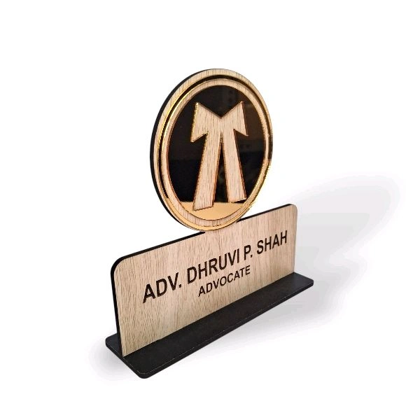 MDF Office Desk Name Plate for Advocate | Customised Laser Engrave Name | 6x6 in