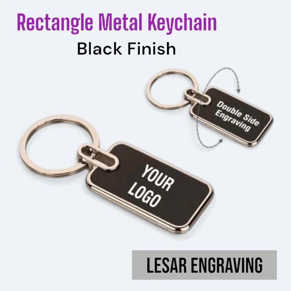 Metal Rectangle Keychain With Custom Name, Black Finish, Laser Engrave