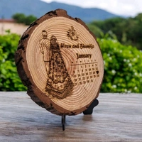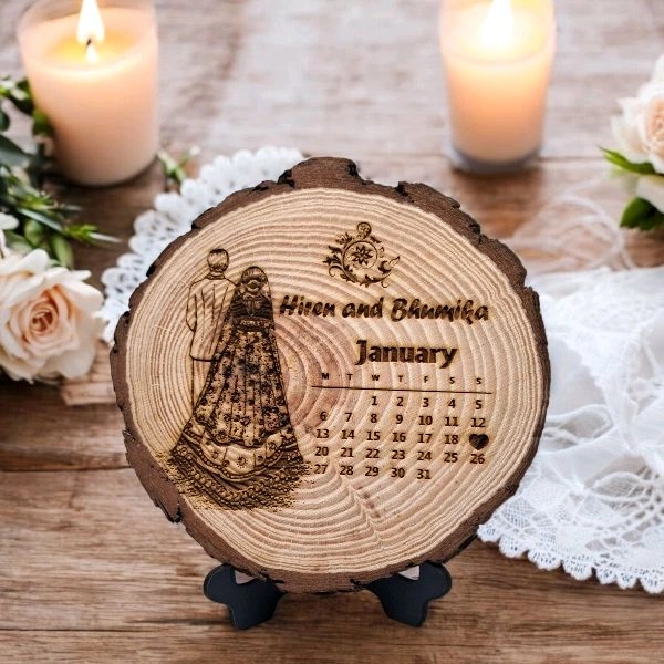 Personalized Customized Natural Ruf Wood Calendar Deign With Photo for Table Top Couple Gift Wedding Marriage Valentine Day (7 Inch)