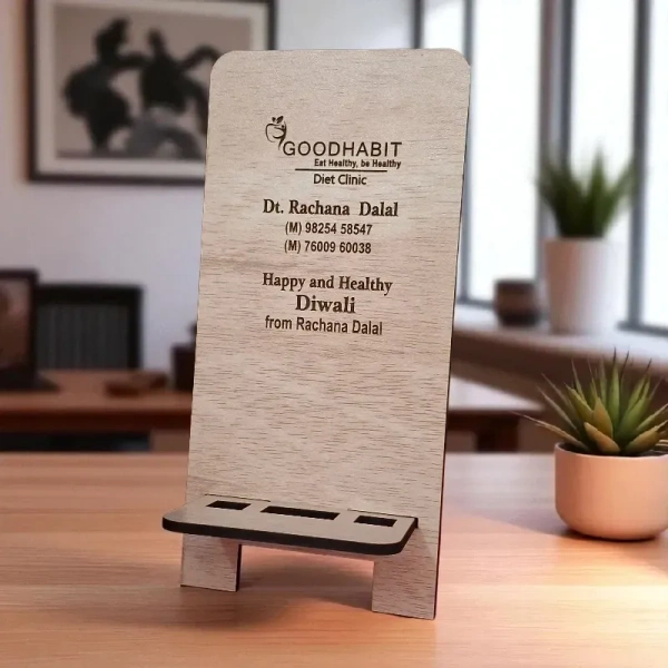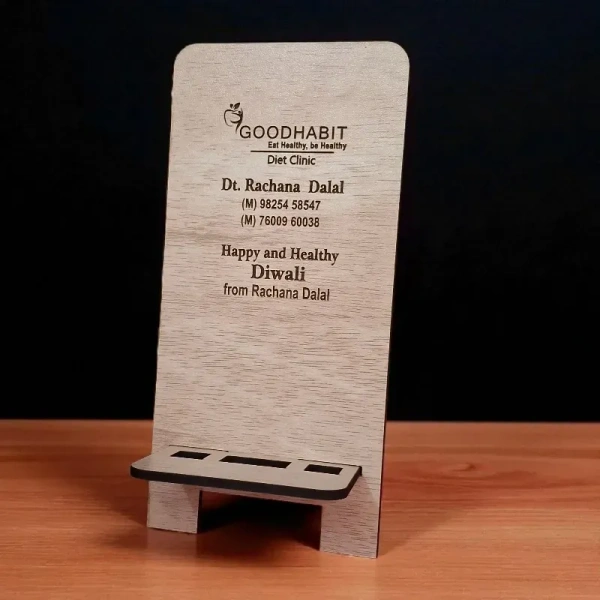 Looking for a sleek and practical solution to keep your mobile phone within reach? The Premium MDF Wooden Mobile Stand Tabletop Portable Mobile Holder is here to elevate your everyday experience. Designed with both aesthetics and usability in mind, this mobile holder is the ultimate accessory for your workspace, bedside table, or kitchen counter. Whether you're attending virtual meetings, watching your favorite shows, or following recipes, this stand has you covered!