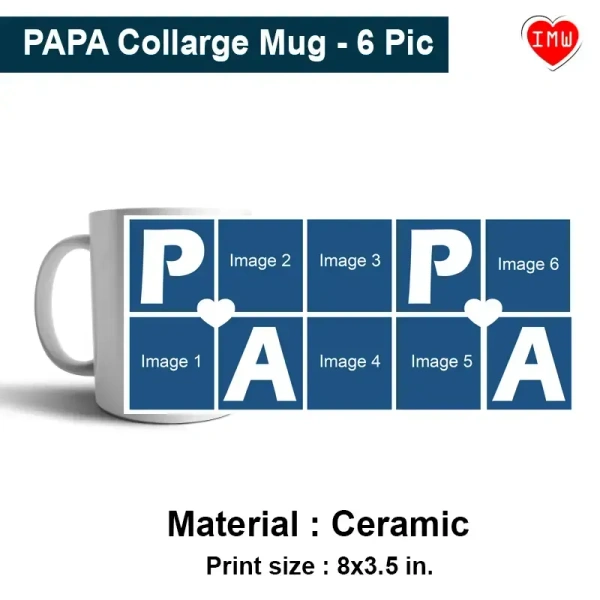 Papa Quote with 6 Pic Photo Mug |Fathers Day | Happy Birthday | Regular Photo Mug