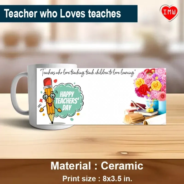 Teacher who loves teaches Quote on Ceramic Mug and name to be customised on it is best gift for your Teacher. It looks so pretty. Specially designed by our Graphics Designer for the occasion of Teacher's Day.